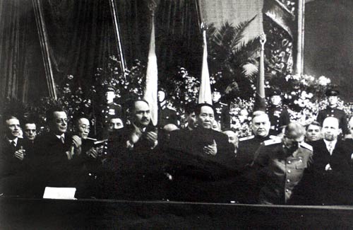 Председатель Центрального Народного Правительства КНР Мао Цзэдун в президиуме торжественного заседания, посвященого 70-летию И.В.Сталина. Москва, декабрь 1949 г.