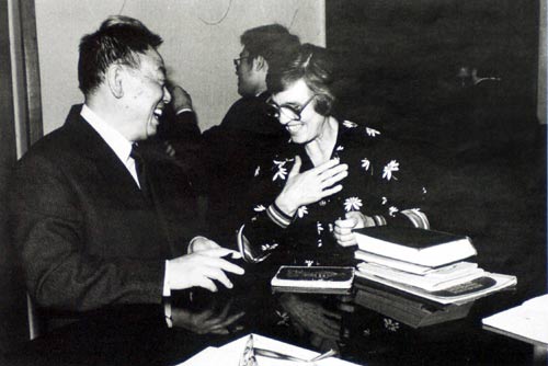 Чрезвычайный и полномочный посол КНР в РФ Ван Цзиньцин подписывает книги китайских писателей на литературно-художественном вечере в Центральном доме литераторов, посвященном ?Дню КНР?. Москва, 1992 г.