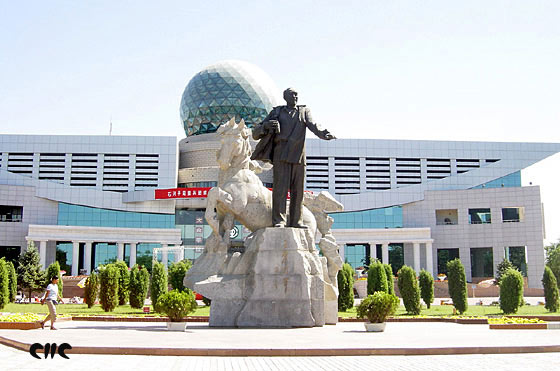 Скульптура Ван Чжэня на площади г. Шихэцзы