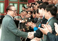 Jiang Zemin se?al? que todos los organismos y cuadros dirigentes de los distintos niveles deben darse cuenta de que asegurar el ejercicio del derecho de administraci?n sobre el Estado y sobre los asuntos econ?micos y sociales por parte de la clase obrera y de las amplias masas trabajadoras representa la exigencia b?sica de la democracia socialista.