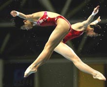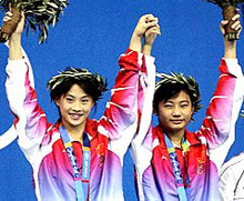 Li Ting y Lao Lishi de China se llevaron hoy lunes la medalla de oro en clavados sincronizados femeniles en plataforma de 10 metros durante los Juegos Olímpicos de Atenas.