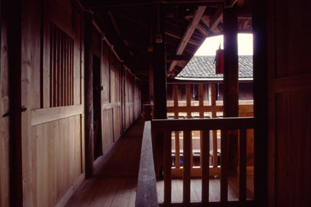 Las torres de tierra distribuyen principalment en el oeste de la provincia de Fujian. En el pasado, debido al atraso económico y a la comunicación difícil había muchos bandidos y peleas armadas en esta zona. Así que después de bajar de la cuenca del río Amarillo en el norte del país, los hakkas, una rama de los hans (etnia mayoritaria de China), construyeron torres de tierra a modo de castillo, que son una especie de viviendas peculiares para defenderse de los bandidos. Estas torres son económicas, sólidas y adecuadas para la defensa propia y tienen un alto valor de arte.