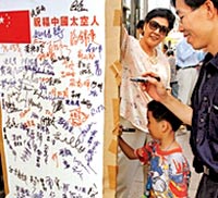La Federación de Uniones Comerciales de Hong Kong (FTU) celebró una campa?a entre el ocho y nueve de octubre en sus 10 oficinas para recoger las firmas de los ciudadanos y mostrar así sus deseos al primer vuelo espacial tripulado de la parte continental.